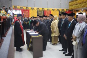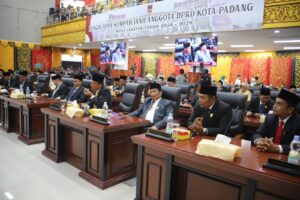 PADANG, – DPRD Kota Padang menggelar rapat paripurna dalam rangka Pengucapan Sumpah Janji Anggota DPRD Kota Padang periode 2024-2029, bertempat di ruang sidang utama Lt. 2 gedung DPRD Kota Padang jalan Bagindo Aziz Chan Kelurahan Sungai Sapih Kecamatan Kuranji Kota Padang, Sumatera Barat, Rabu, 14 Agustus 2024.