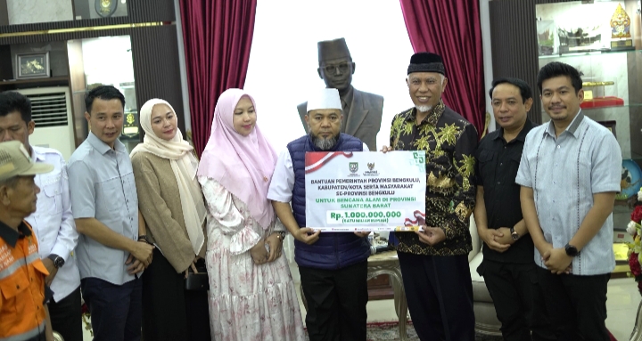 Bantuan tersebut diserahkan langsung oleh Gubernur Bengkulu, Helmi Hasan kepada Gubernur Sumbar, Mahyeldi Ansharullah, di Istana Gubernur Sumbar, Kamis (11/12/2025).