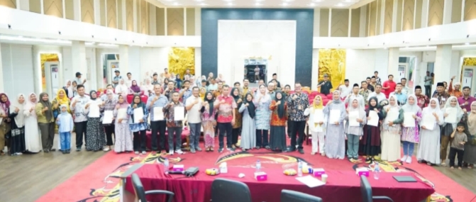 Pada kesempatan yang sama, BPN juga menyerahkan sertifikat hasil program Pendaftaran Tanah Sistematis Lengkap (PTSL) dan sertifikat Barang Milik Daerah (BMD) kepada Pemerintah Kabupaten Dharmasraya.