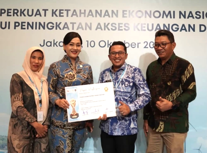 Penghargaan itu diberikan Kepala Eksekutif Pengawas Perilaku Pelaku Usaha Jasa Keuangan, Edukasi, dan Pelindungan Konsumen yang juga Anggota Dewan Komisioner Otoritas Jasa Keuangan Friderica Widyasari Dewi, Jum’at dalam acara Rapat Koordinasi Nasional (Rakornas) TPAKD Tahun 2025 di Ballroom Danarote Balai Kartini Jakarta Jumat (10/10)