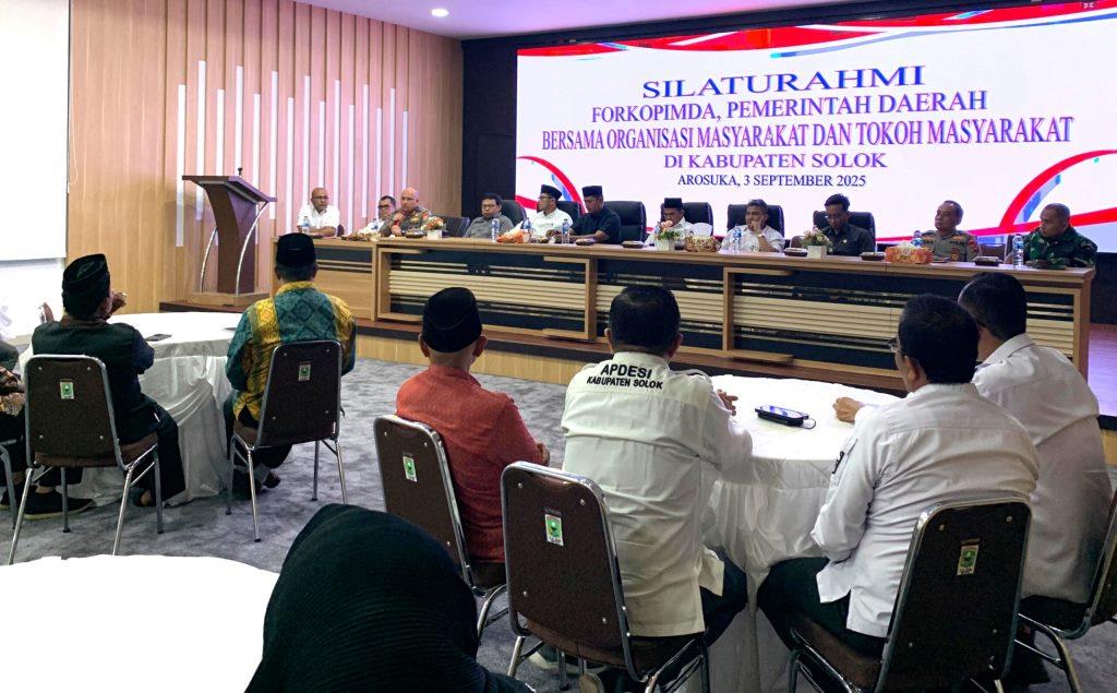 Arosuka, majalahintrust.com – Bupati Solok, Jon Firman Pandu didampingi Wakil Bupati Solok, Candra menggelar kegiatan silaturahmi bersama Forum Koordinasi Pimpinan Daerah (Forkopimda), Organisasi Masyarakat (ormas), dan tokoh masyarakat di aula pertemuan Setda Kabupaten Solok, Rabu (03/09/2025).