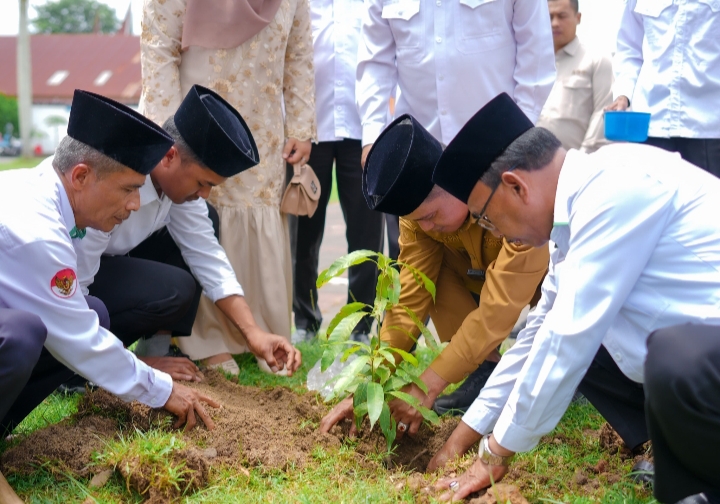 Kegiatan penanaman pohon ini juga diikuti oleh Kepala Kantor Kemenag Kabupaten Solok beserta jajaran, Kepala OPD terkait, serta para calon pengantin yang mengikuti bimbingan perkawinan.