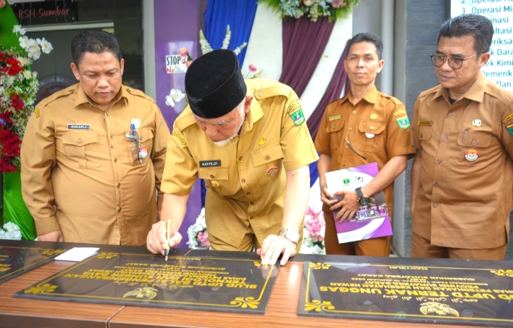 Padang, majalahintrust.com – Gubernur Sumatera Barat Mahyeldi Ansharullah meresmikan penerapan Badan Layanan Umum Daerah (BLUD) pada tiga Unit Pelaksana Teknis Daerah (UPTD) sektor peternakan di lingkungan Pemerintah Provinsi Sumbar, yakni UPTD Rumah Sakit Hewan Sumbar, UPTD Ternak Unggas, dan UPTD Balai Pembibitan Ternak dan Semen Beku (BPTSB) Tuah Sakato, Senin (19/1/2026).