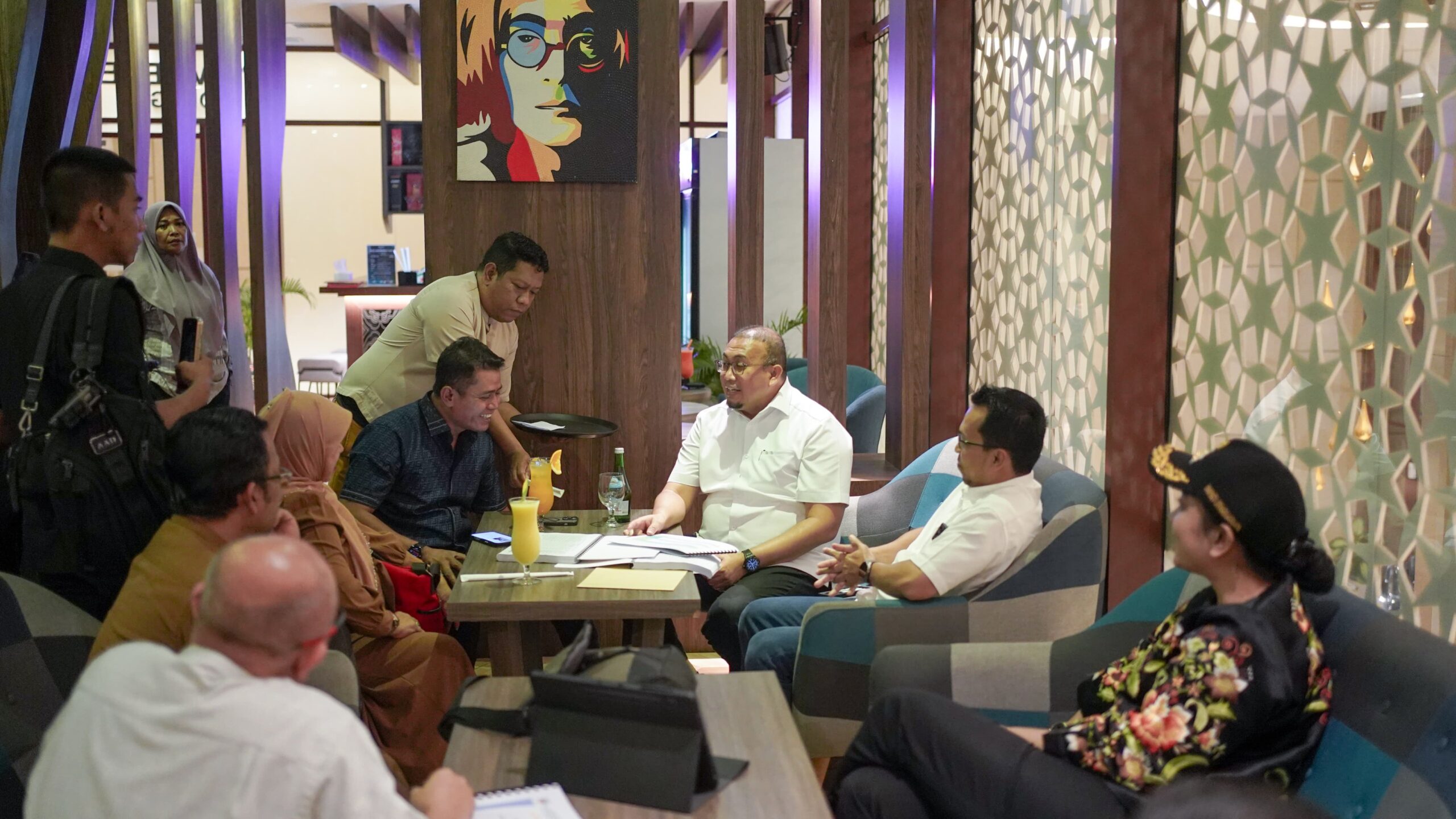 Padang, majalahintrust.com – Bupati Solok, Jon Firman Pandu didampingi oleh Kepala Dinas PUPR Kabupaten Solok, Effia Vivi Fortuna secara langsung menyerahkan proposal kepada Anggota DPR RI, Andre Rosiade dalam rangka mendukung pelaksanaan program Instruksi Jalan Daerah (IJD) di Kabupaten Solok di Hotel Mercure Padang, Selasa (12/08/25).