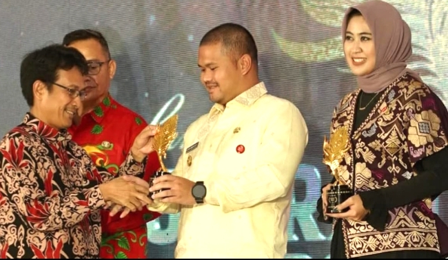 Penghargaan tersebut diterima langsung oleh Wakil Wali Kota Sawahlunto Jeffry Hibatullah, bersama Anita Dona Asri, owner sekaligus pengelola Kampung Dolas Songket.