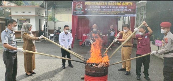 Sawahlunto, majalahintrust.com – Kejaksaan Negeri Sawahlunto (Kejari) Sawahlunto musnahkan Barang Bukti (BB) Tindak Pidana Umum sebanyak 8 perkara dan 1 perkara berasal dari sisa tahun 2024 yang masih ada upaya hukumnya di tahun 2025.