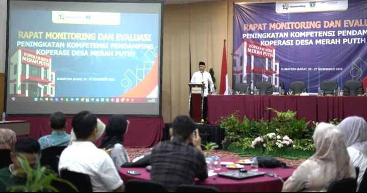 Hal itu disampaikan Mahyeldi saat membuka Rapat Monitoring dan Evaluasi (Monev) Pendampingan Koperasi Desa/Kelurahan Merah Putih di Sumbar tahun 2025 yang digelar di Padang, Jum’at (26/12/2025). Kegiatan ini diikuti Satgas KDKMP provinsi dan kabupaten/kota, OPD terkait, BUMN/BUMD, serta para pendamping koperasi.