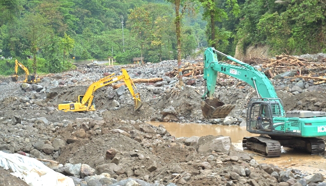 Kepala Dinas Sumber Daya Air dan Bina Konstruksi (SDABK) Provinsi Sumbar, Rifda Suriani mengungkapkan hingga saat ini pihaknya telah menurunkan 35 unit alat berat dan memasang 940 geobag di berbagai lokasi terdampak.