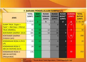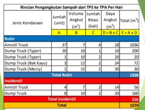 Ia memaparkan, analisa tambahan kebutuhan sarana yang kurang tersebut berdasarkan dari potensi timbulan sampah per hari mencapai 1940,85 m3. Sementara total daya angkut armada rutin dan insidentil hanya 1574 m3 per hari. Sehingga sampah yang tidak terangkut mencapai 366,85 m3 perhari.