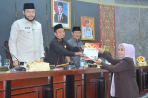“Tiga Ranperda ini sangat strategis untuk memperkuat fondasi pembangunan daerah. Baik dalam aspek ekonomi melalui penguatan penyertaan modal terhadap Bank Nagari, maupun peningkatan layanan air minum oleh Perumda AM,” urainya.
