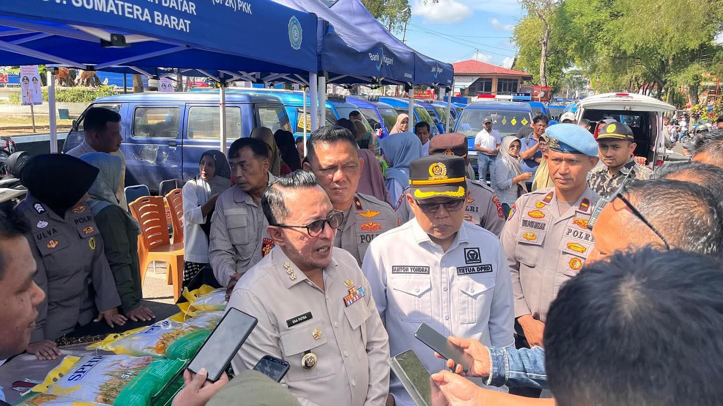 Bupati Eka Putra menyampaikan gerakan pangan murah yang dilaksanakan Polres Tanah Datar jelas sangat membantu dan sangat diminati oleh masyarakat.