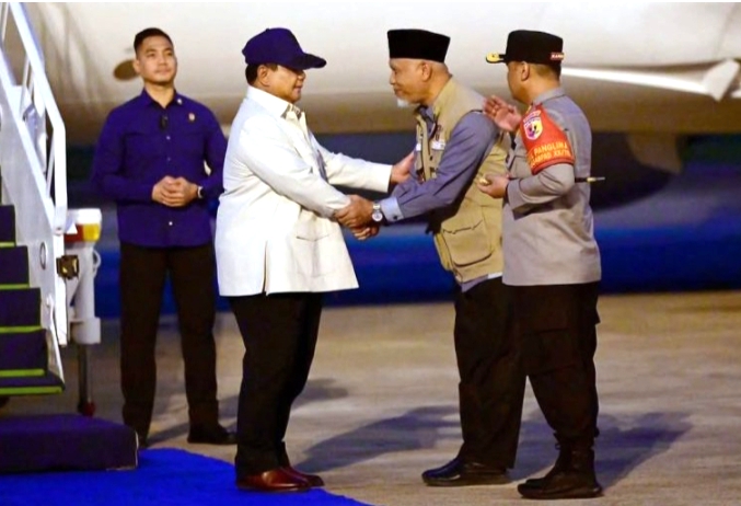 Padang Pariaman, majalahintrust.com – Gubernur Sumatera Barat Mahyeldi Ansharullah menyambut langsung kedatangan Presiden Republik Indonesia, Prabowo Subianto, di Bandara Internasional Minangkabau (BIM), Rabu (17/12/2025).