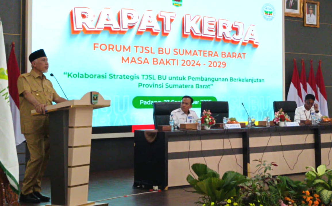 Padang, majalahintrust.com – Gubernur Sumatera Barat Mahyeldi Ansharullah membuka Rapat Kerja Forum Tanggung Jawab Sosial dan Lingkungan Badan Usaha (TJSL BU) Sumatera Barat masa bakti 2024-2029 yang di selenggarakan di Auditorium Gubernuran, Selasa (23/9/2025).