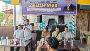 Sebagai Wakil Ketua DPRD Kota Padang, Osman Ayub menggelar reses masa sidang II tahun 2026 di Banang Cafe Siteba Kecamatan Nanggalo, Rabu, 7 Januari 2026. Hadir pada kesempatan itu, pejabat terkait, ninik mamak, bundo kanduang, pemuda, remaja, dan peserta reses.