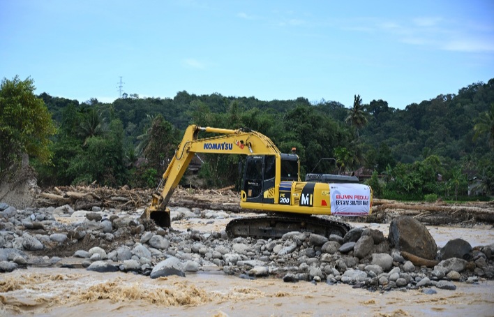 Selain bantuan logistik, perusahaan juga mengerahkan tiga unit alat berat untuk membersihkan material lumpur di sejumlah titik terdampak. Fokus utama pembersihan berada di sepanjang Jalan Raya Mohammad Hatta, jalur vital yang menghubungkan Simpang Pasar Baru dan Simpang Pasir.