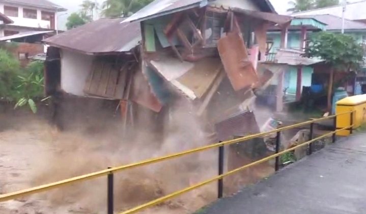 Akibatnya Rumah milik Bismi Hayati (53) yang dihuni bersama dua anaknya roboh terseret arus. Selain itu, satu jembatan hanyut dan beberapa titik jalan provinsi rusak parah
