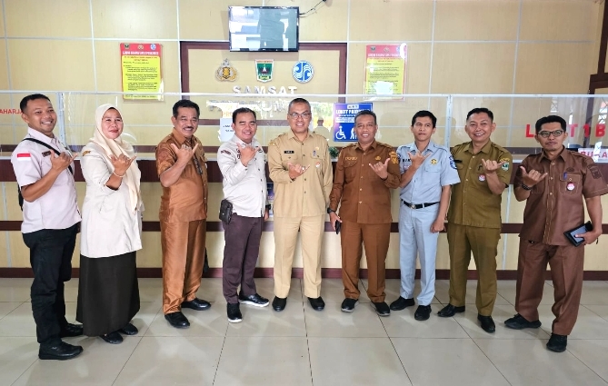 Dalam kunjungan tersebut, Sekdaprov meninjau langsung alur pelayanan, fasilitas pendukung, serta berdialog dengan petugas dan masyarakat yang sedang melakukan pengurusan administrasi kendaraan bermotor.