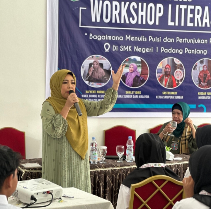 Padang Panjang, majalahintrust.com -Shirley Idris, penulis dan penari terkenal asal Malaysia yang dijuluki “Ratu Puisi Tari”, bersama Sastri Bakry, Ketua SatuPena Sumbar mengunjungi  SMK negeri 1 dan 2 Padang Panjang Rabu kemarin tanggal 22 Oktober untuk berbagi pengalaman dan mengajar siswa tentang menulis dan pertunjukan puisi.