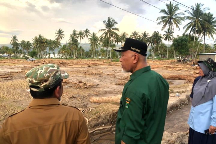 Dalam peninjauan tersebut, Gubernur berinteraksi langsung dengan masyarakat serta menyerahkan bantuan kebutuhan dasar senilai total Rp68 juta untuk warga terdampak di dua lokasi di Nagari Muaro Pingai.